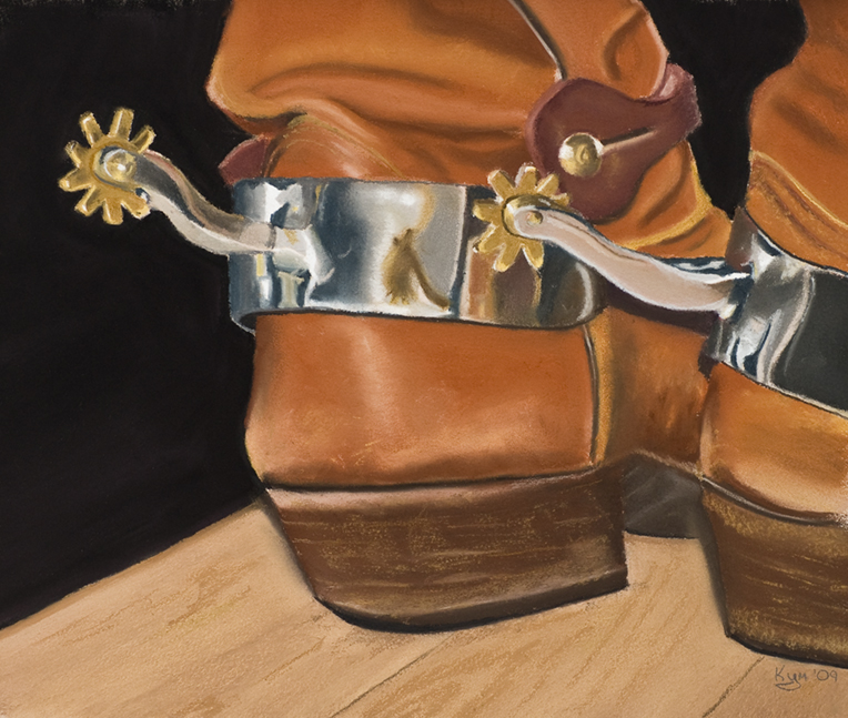 After the rodeo continues my rodeo series with a still life painting of cowboy boots and spurs. You can tell that these boots have been around the block a few times - perhaps they are the cowboy's lucky pair. But they have been lovingly cleaned and the spurs have been polished after a hard day at the rodeo grounds. They are sitting on the wooden tack room floor, just waiting for the next day of hard work. The painting is 9x12 and is painted on Colourfix paper.